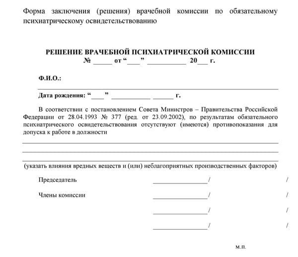 - Постановление Правительства 695. Определяет обязательность психиатрического осмотра для работников, занятых определенной деятельностью;