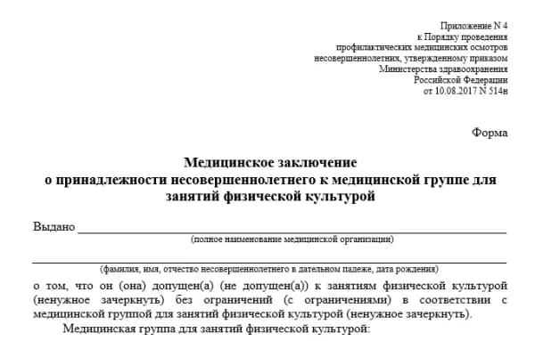 Купить справку 514н (заключение о медосмотре несовершеннолетних)