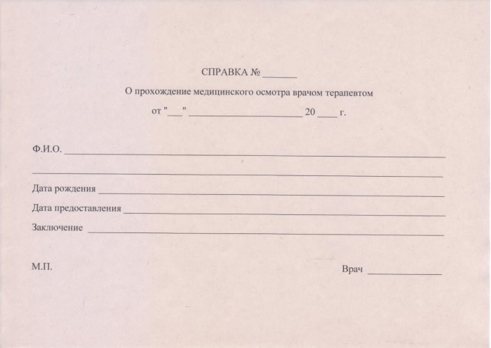 Медсправку пациент получает на основании паспорта. В ней пишется ФИО обследуемого, причина выдачи документа и дата. На бланке терапевт ставит свою подпись, печать, заверяется справка штампом медучреждения.